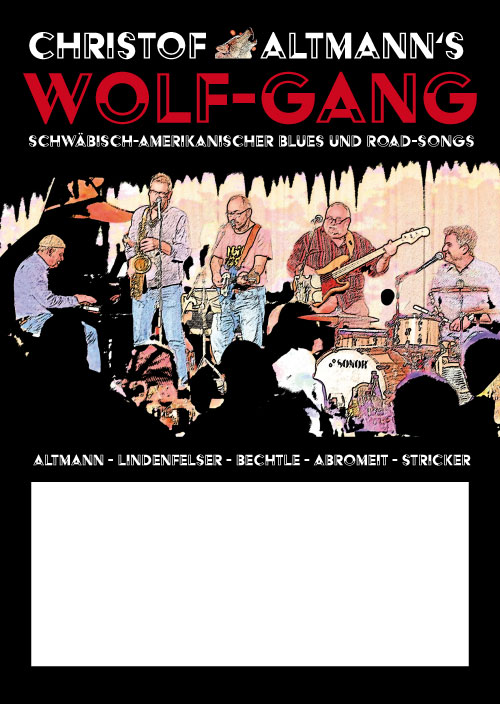 Aus unterschiedlichen Richtungen kommend begaben sich die 5 friedfertigen musikalischen Wölfe im Frühjahr 2019 gemeinsam auf die Blues-Spur. Mal schleichen sie dabei eindringlich und auf leisen Sohlen, dann wieder geht es in wilder Jagd durch die Chorusse eines Songs. Als echtes Rudel verstehen es die fünf, musikalisch aufeinander einzugehen und sich dabei bestens zu ergänzen. Saxophon und Gitarre setzen sich dabei immer wieder an die Spitze. Aber auch die anderen Wölfe dürfen aus dem Rudel heraustreten und eine Zeitlang den Ton angeben. Natürlich schnüffelt die Wolf-Gang auch in verwandten musikalischen Bereichen und kehrt von dort mit reicher Beute zurück auf den Hauptpfad. Ihre unterhaltsamen Botschaften jaulen sie dem Publikum in den Weltsprachen Schwäbisch und Amerikanisch um die Ohren. Sie zeigen, dass sich diese beiden keinesfalls beißen, sondern eher schwanzwedelnd umschmeicheln. Und beweisen außerdem hieb-und stichfest: Die Wurzeln des Blues liegen sowohl am Mississippi als auch tief im Cannstatter Nesenbach Delta.
